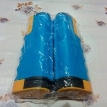 The net is great, easy to set up. The sticky layer of one of the paddles came off as we removed the plastic for the first time and they have a really strong chemical/plastic smell.