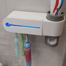 Very cool antibacterial holder. Beautiful design! Holds everyones toothbrush and sanitizes them effortlessly. Great product to save counter space & have a clean toothbrush. Very great product!